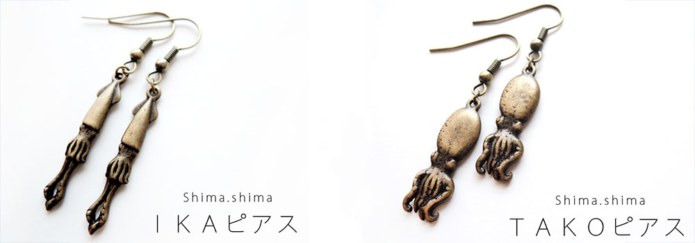 イカ・タコをモチーフにしたピアス・イヤリングです。細身で繊細なデザインなので、普段使いはもちろん、ちょっとしたお出かけでもさりげなく身に着けられます。