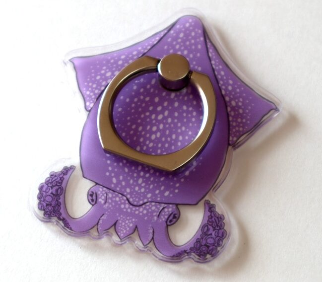 イカをモチーフにしたスマートフォン用のリングです。パープルカラーの大人っぽくもかわいらしくも見えるデザインで、お手持ちのスマートフォンケースを華やかに見せてくれます。